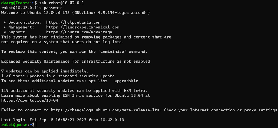 ssh robot@10.42.0.1