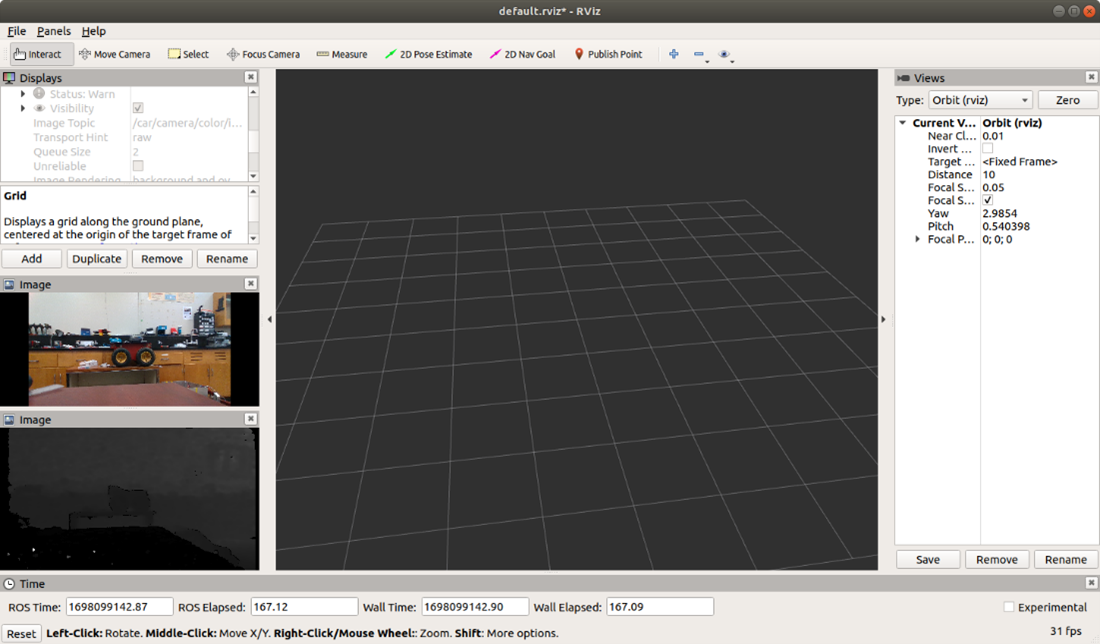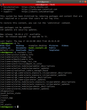 - such as ../camera/depth/image_raw and ../camera/color/image_raw which contains depth information and rgb color data, respectively, for the captured frame.